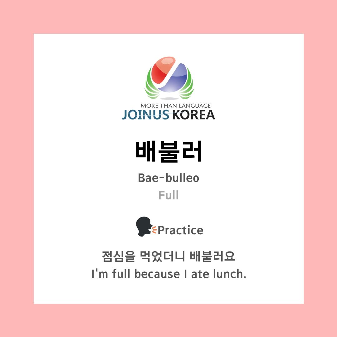Those are 배고파(hungry), 배불러(full), and 맛있어(delicious).