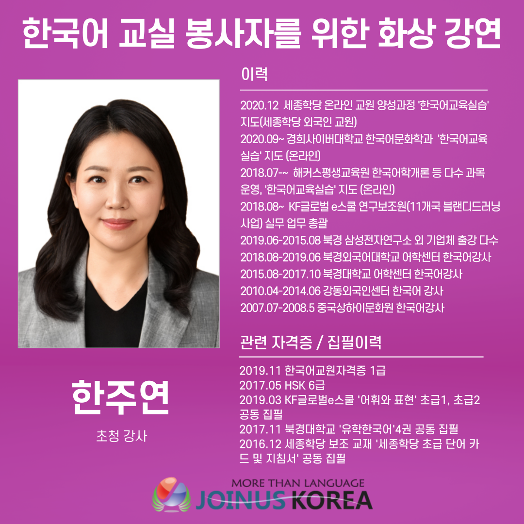 [조인어스코리아] 한국어교육자 대상 강연 초대링크 안내합니다.