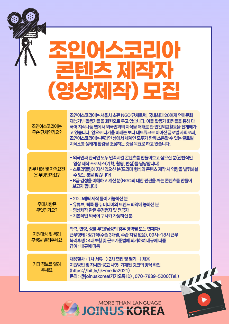 o 이메일: recruit@joinuskorea.org o 카톡: @joinuskorea |
