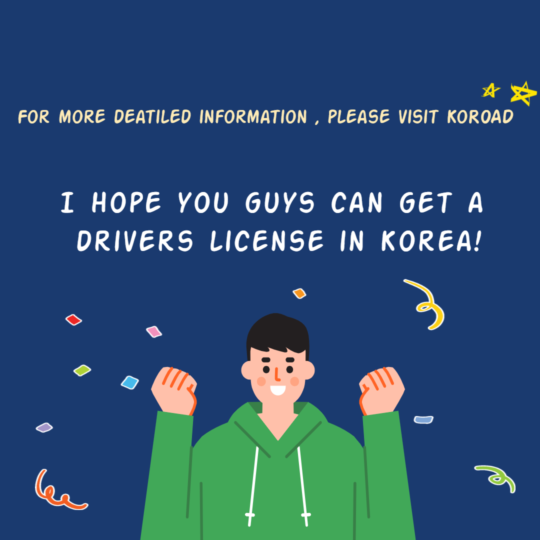 Today I'm going to talk about how foreigners can get a driver's license in Korea. For more detailed Information, please visit KoROAD! I hope you guys can get a driver license in Korea :)