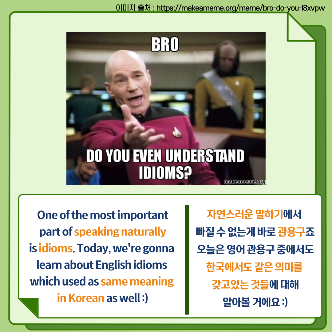 Hi guys! today we brought some English idioms which exist and have same meaning in Korea as well