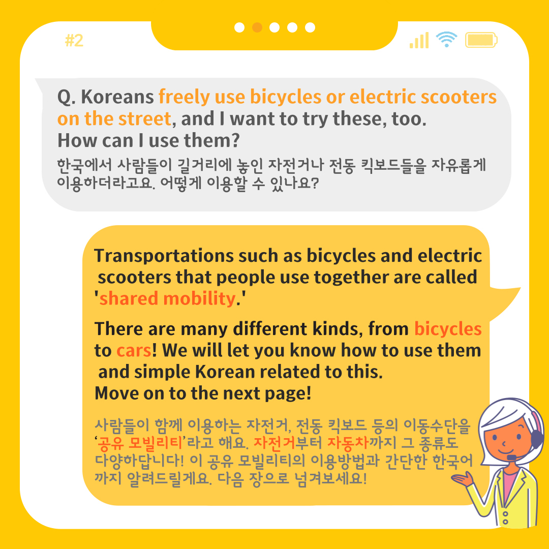 Hello! Today we are going to show you 'Shared Mobility'! Do you know what that means? Have you seen people freely use bicycles or scooters on a street?
