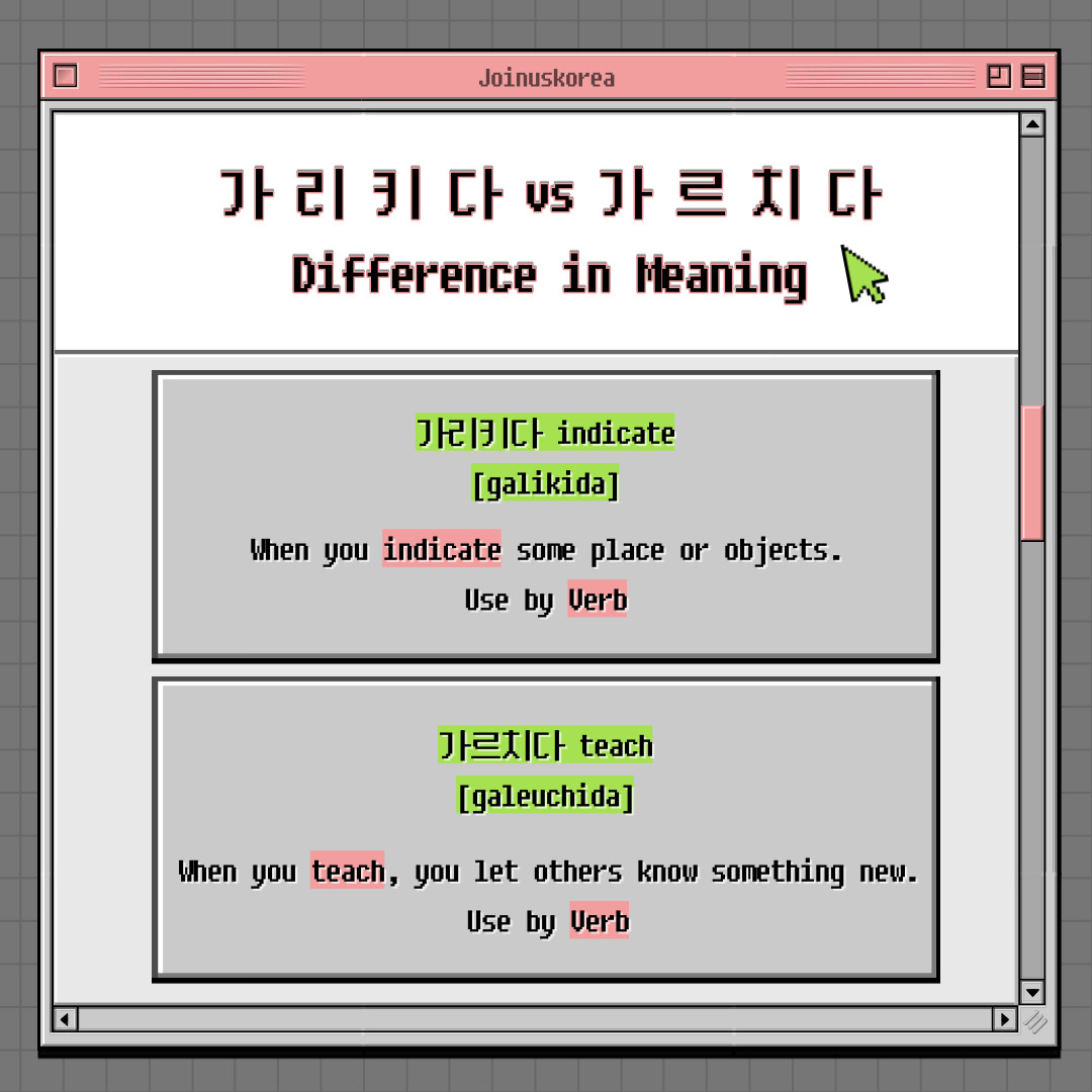 Are you familiar with the difference between "가리키다" and "가르치다"? 🤔