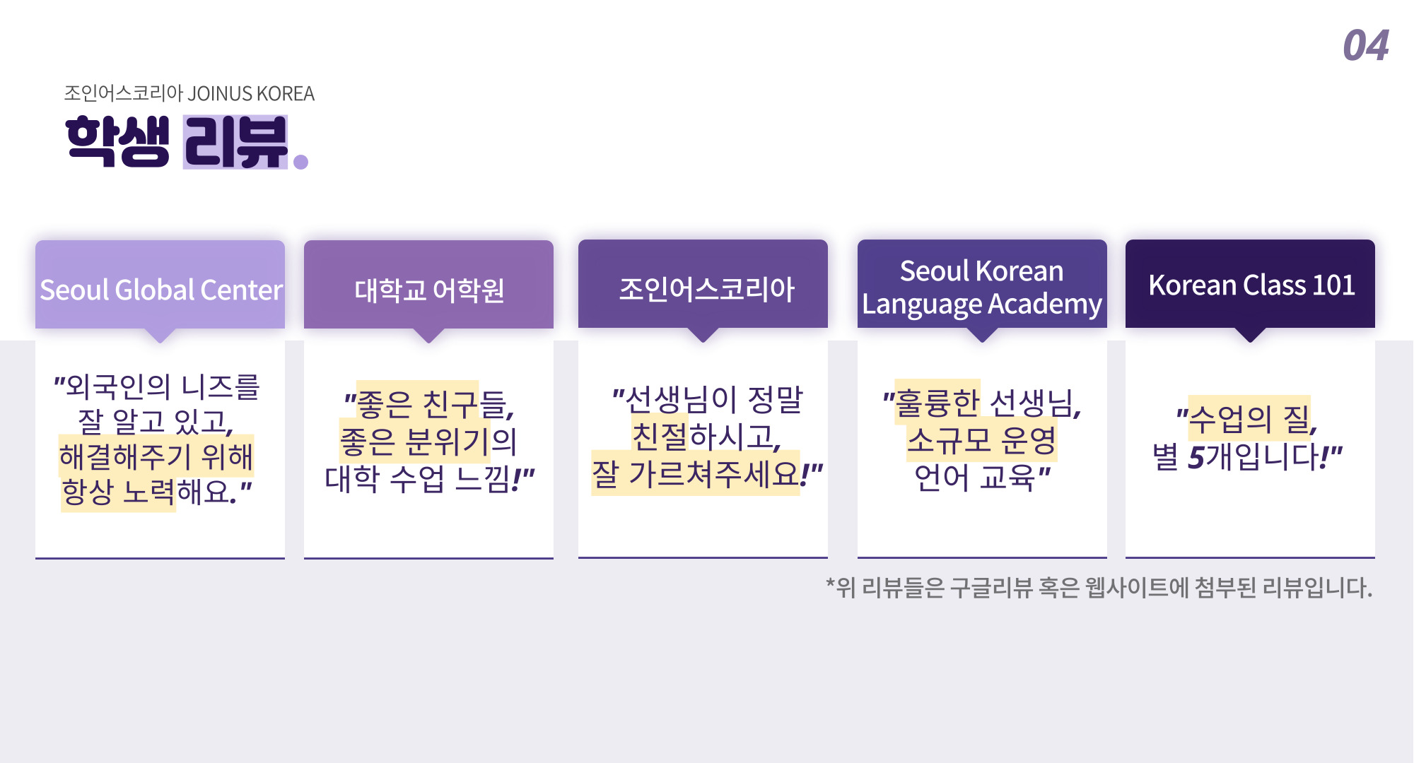 (서울대 Language Education Center의 경우에는) 구글에서 학생들의 한국어 수업 리뷰를 활성화 했기 때문에, 온라인 상에서 후기를 쉽게 찾아볼 수 있다.