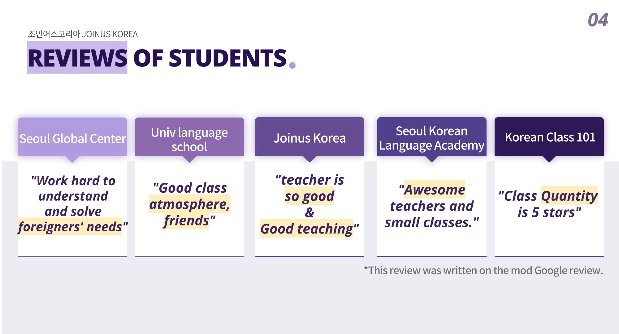 (in case of SNU Language Education Center) activates students’ Korean class reviews through Google