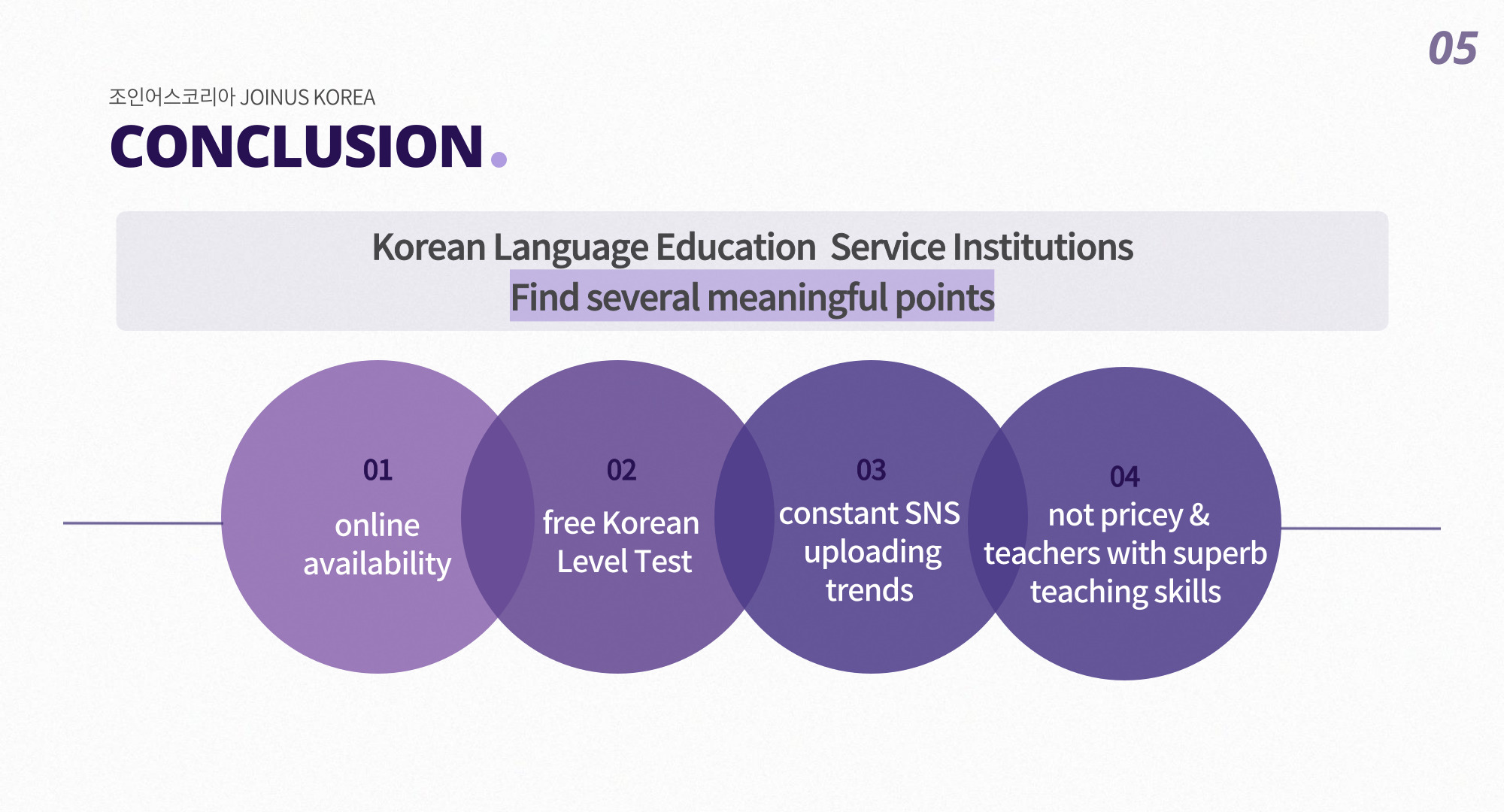 By this analysis, we were able to find several meaningful points regarding how to find a suitable Korean language education program.