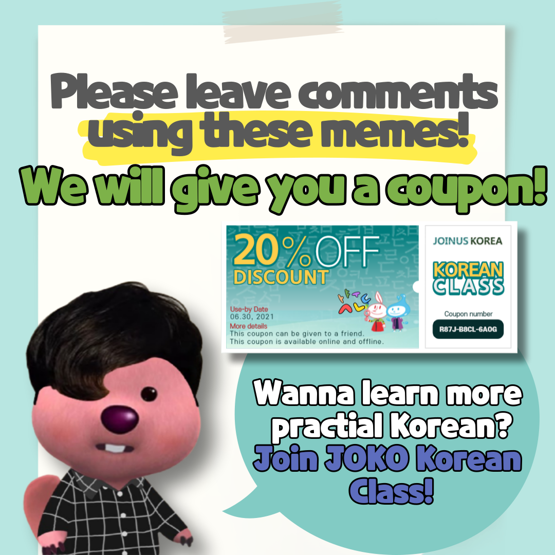 “어? 예쁘다.” Hi JOKOers!🌱 Have you seen this phrase? What in the world is ‘k-meme’? Why don’t we learn Korean through K-memes? It will make you cool when you use these memes😎 Swipe up to the next page! 🙌