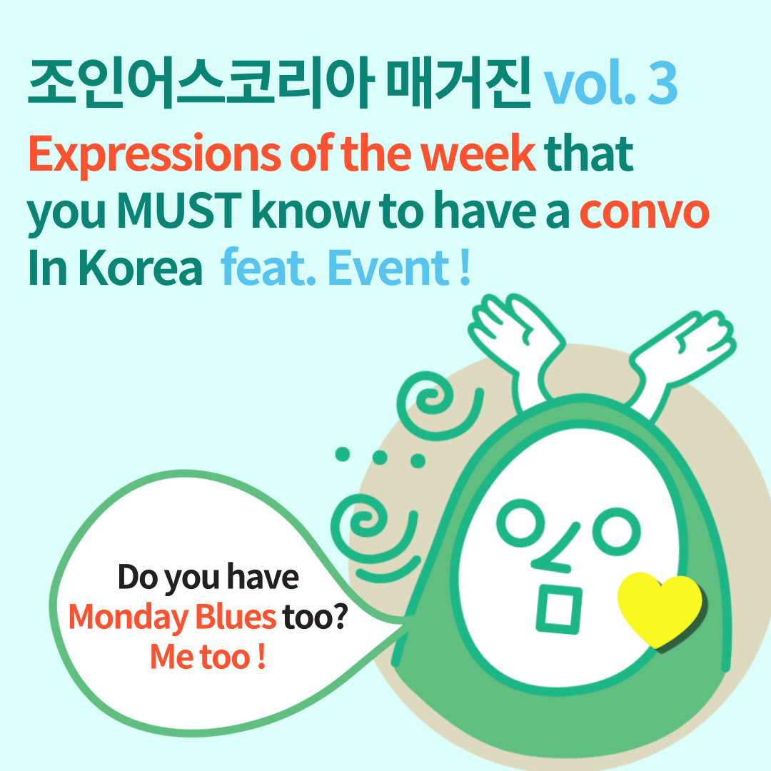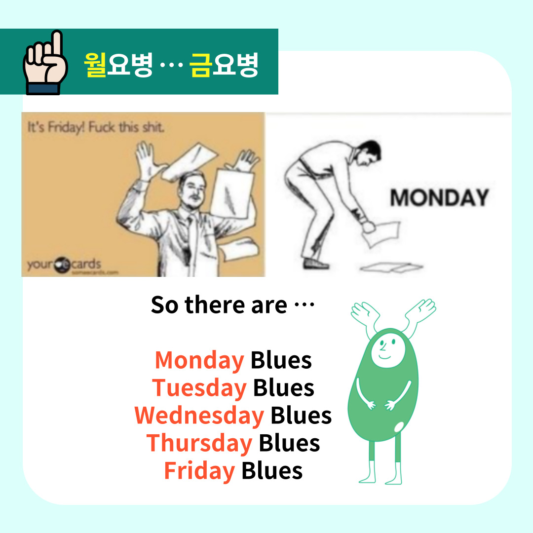 #언어문화NGO #조인어스코아 #joinuskorea #learningKorean #OpenKoreanClass #KoreanClass #KoreanLanguage #1on1Korean #KoreanTutoring #TOPIK #teach #indicate #Korean #koreanspeech #speech #studylanguage #찐한국인 #한국어문법 #매거진 #조코매거진 #한국어공부 #koreangrammar #조코한국어교실 #koreanclass  #요일표현 #expressions #Korean #월요병 #humpday #mondayblue #manfriday #blackthursday