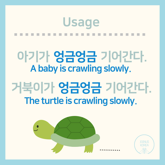 For example, we can describe a turtle's movements as 엉금엉금🐢