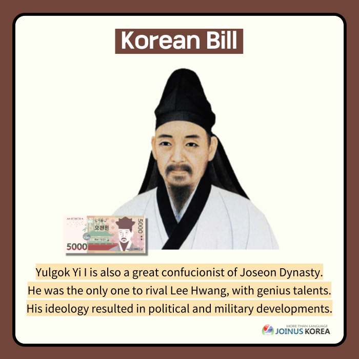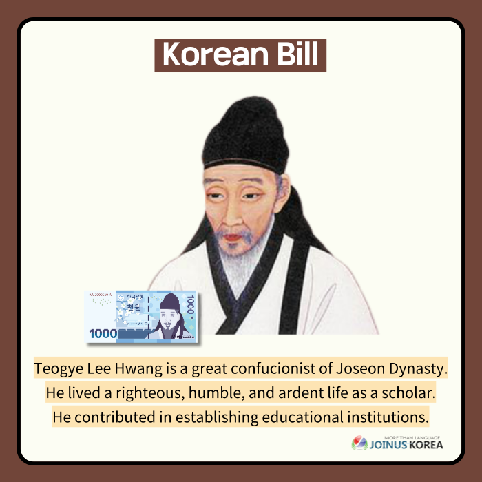 Have you ever wondered about the people in Korean paper money? We will briefly explain about the four historical figures in each bills. Swipe to find out who they are!