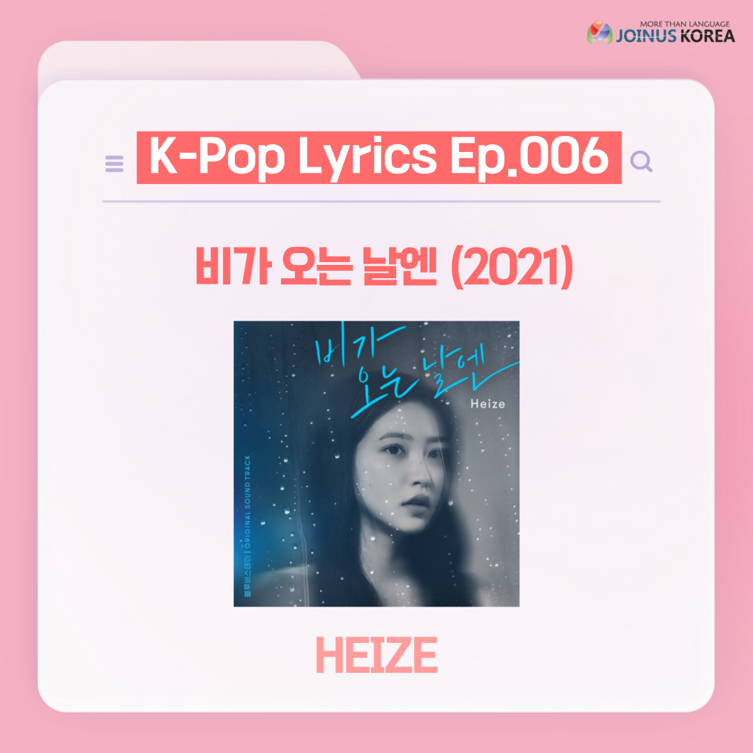 Today we're going to look into a phrase from HEIZE's new song '비가 오는 날엔'🌧