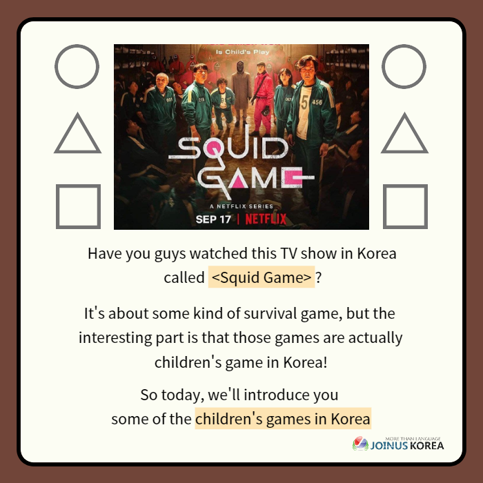 If you have watched <Squid game> or want to know what games Korean children play, SWIPE!