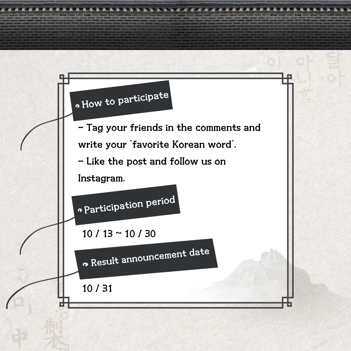 HOW TO PARTICIPATE 1. access to instagram @joinuskorea