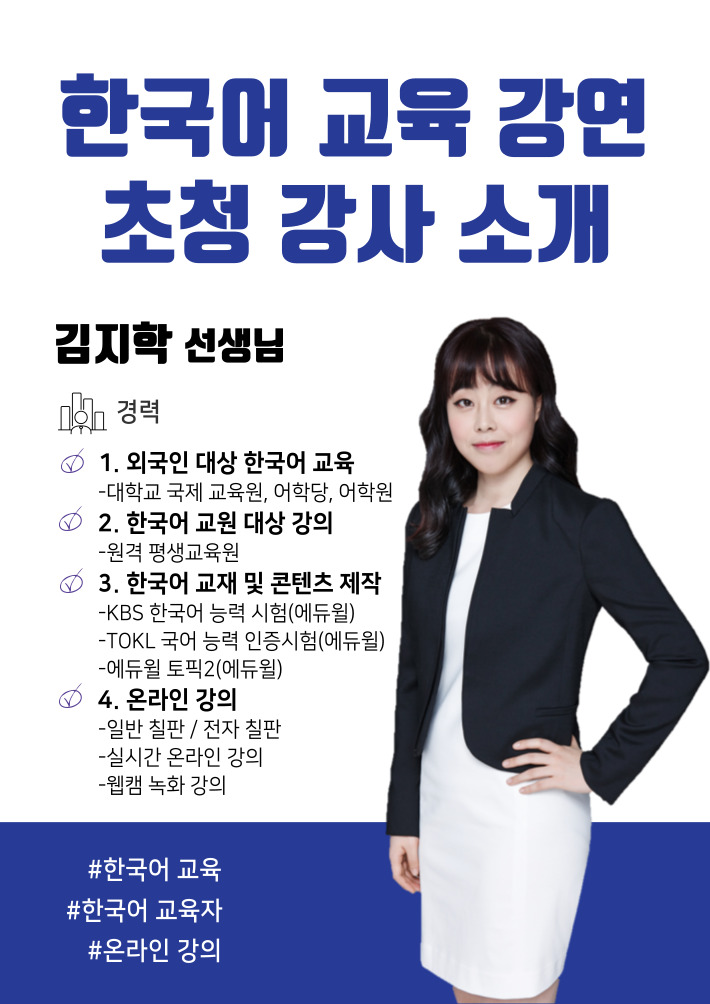 | [모집] 한국어 교육자 대상 일일 강연자 초빙 안내 (온라인 화상) (0) | 2022.03.22 |
