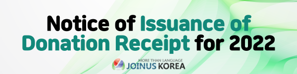 JOINUS KOREA would like to inform you of the issuance of donation receipts for precious donations sent to <Private Organizations Subject to Donation> as follows.