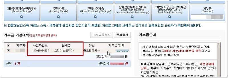 You can print out the donation receipt through the <Year-end Settlement Simplification Service> provided by the National Tax Service.