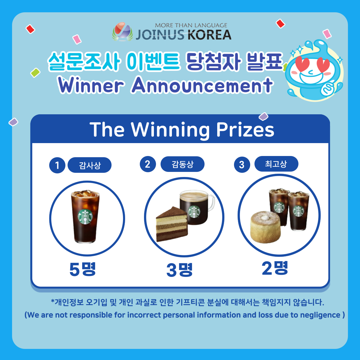 지난 주, 저희 조인어스코리아에서 인지도 및 만족도 관련 설문조사 이벤트가 성황리에 마무리 되었습니다! 🎉🎉