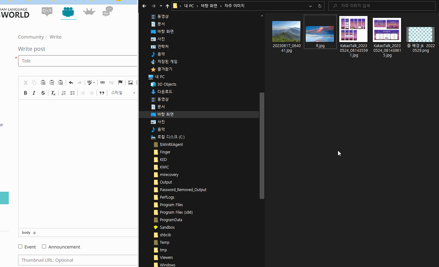 2) 클립보드(clipboard) 붙여넣기 : 탐색기에서 복사해서 붙여넣기로 이미지 첨부