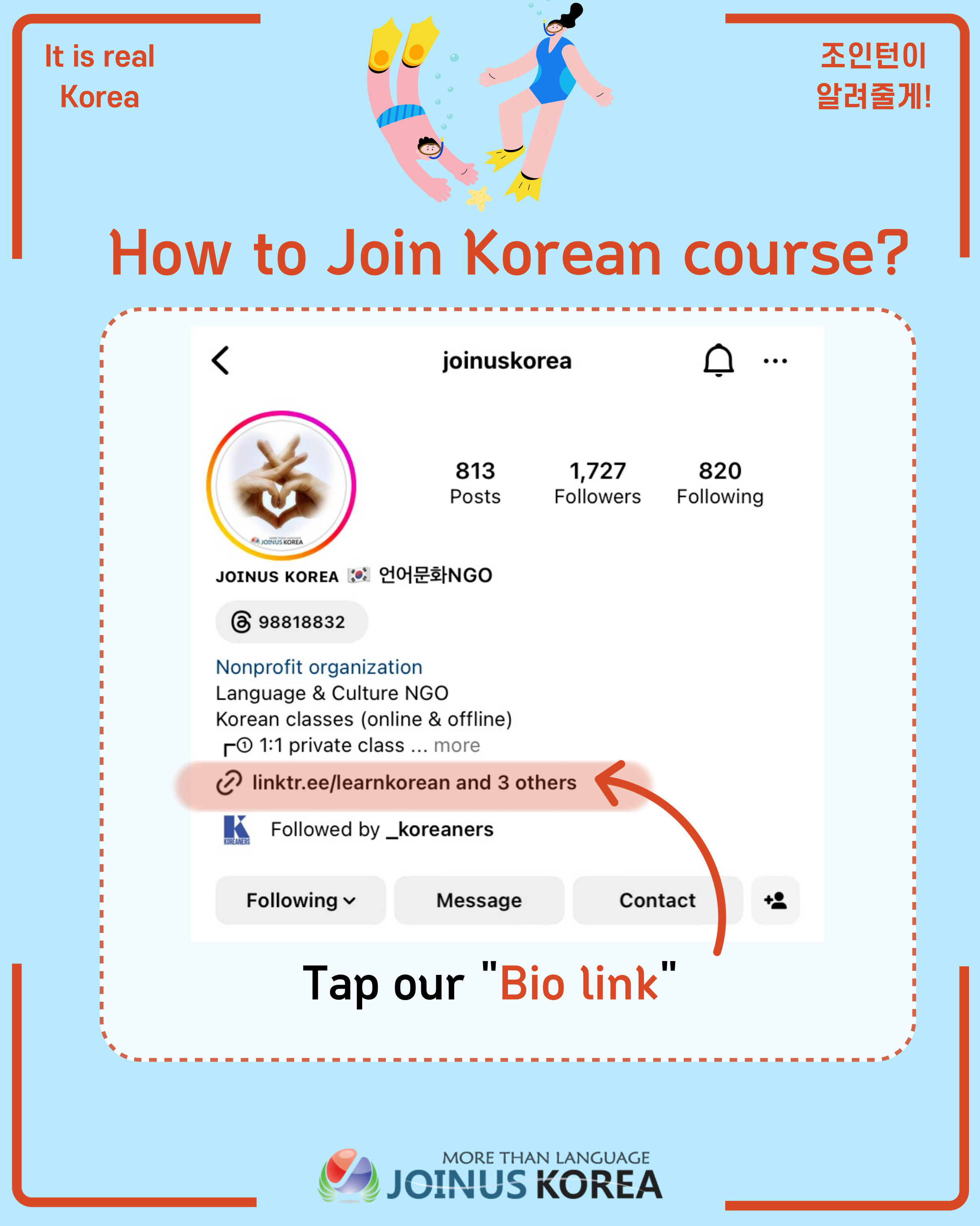 JOINUS KOREA is the biggest NGO in Korea which has 20 linguistic spheres members called 'Language Culture Knowledge Exchange Activists without Borders' (JOKOER). It is a purely non-profit private diplomacy organization that operates a Multilingual & Multicultural knowledge hub community that interacts with people all around the world through the knowledge.