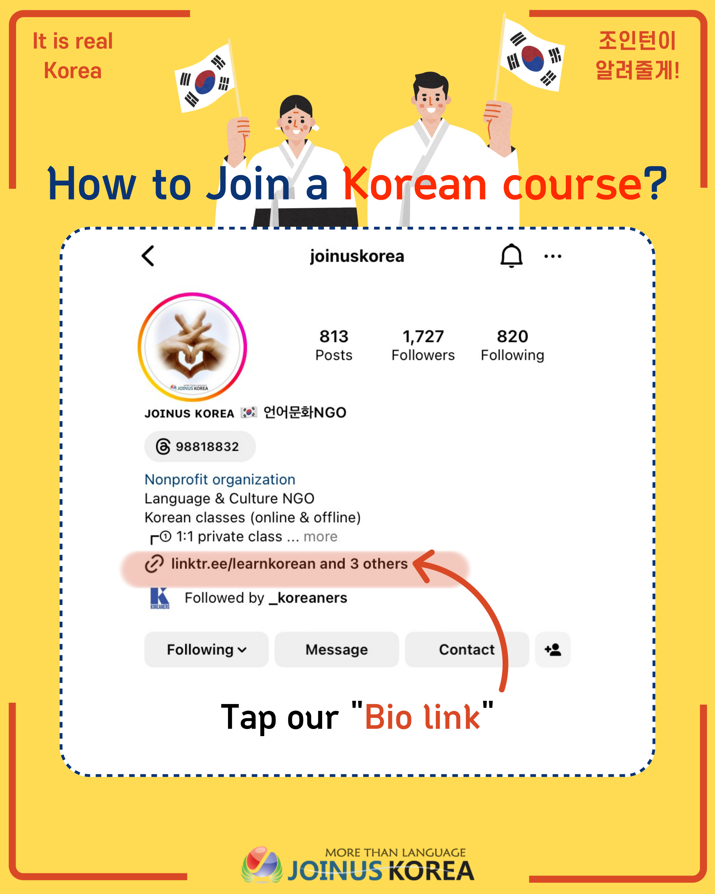 JOINUS KOREA is the biggest NGO in Korea which has 20 linguistic spheres members called 'Language Culture Knowledge Exchange Activists without Borders' (JOKOER). It is a purely non-profit private diplomacy organization that operates a Multilingual & Multicultural knowledge hub community that interacts with people all around the world through the knowledge.
