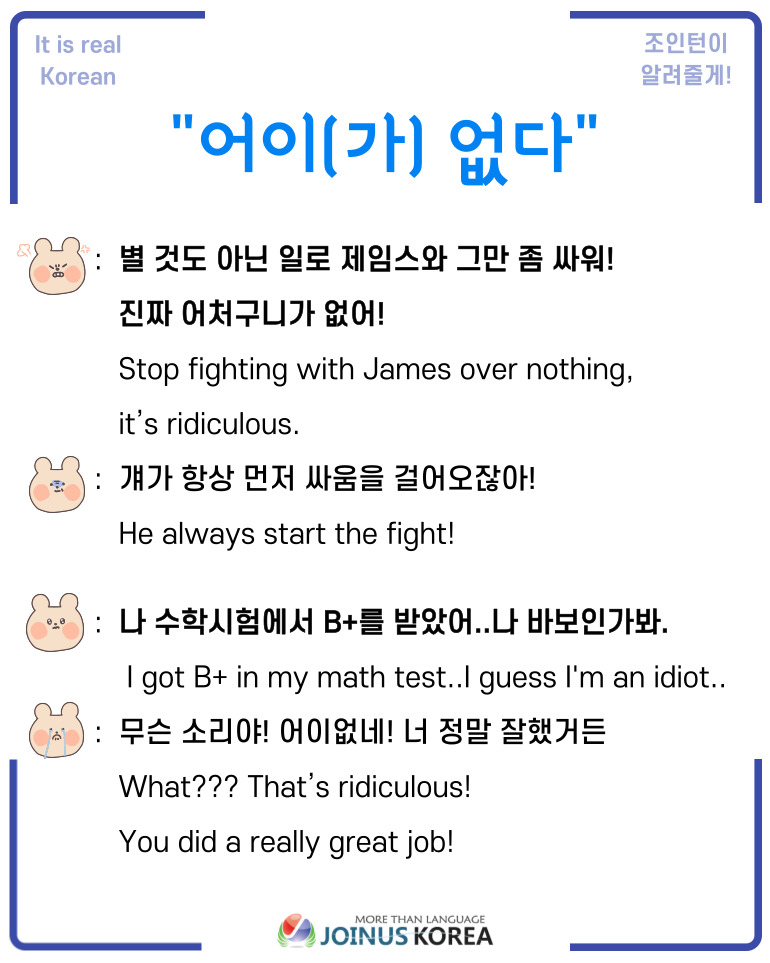 Today’s expression, ‘어이(가) 없다' is an expression to express feeling, especially when it’s ridiculous or something is unexpected. 😈