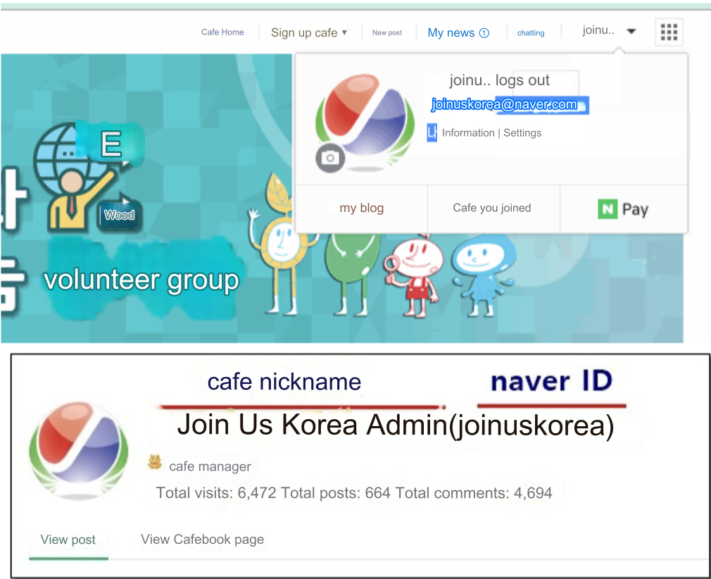 Please modify the cafe nickname (user name) to name (or surname/name, not duplicated nickname). (Only in case of name duplication, add nickname after name, etc.)