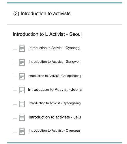 ※ Please write one Activist Introduction (you can find this in the category bar on the left side) and 5 welcoming & cheering comments on other members' posts. Then you will automatically be registered as [General Member activists] (However, if you delete the posting and comments after registration, you will be permanently forced to leave)