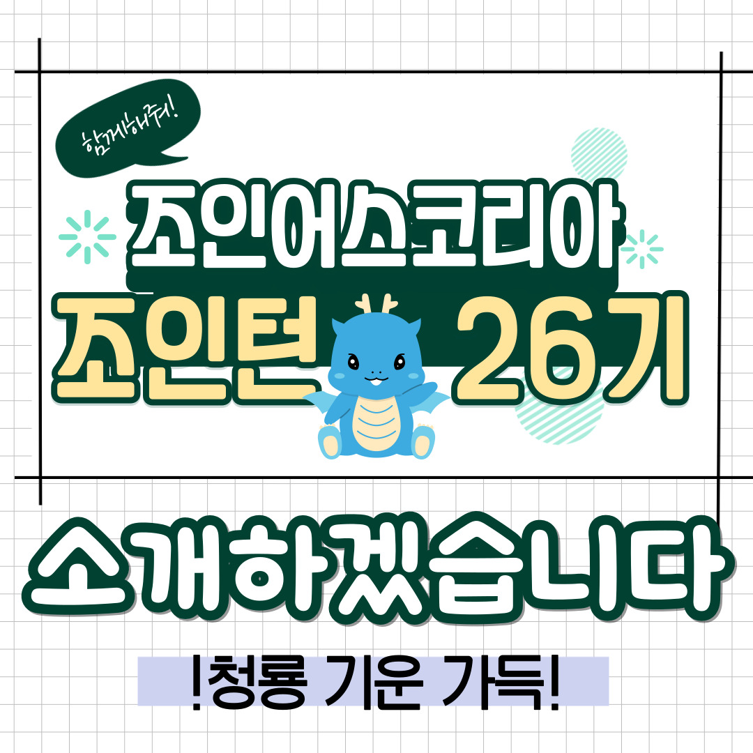 조인어스코리아와 26기 인턴 모두 많은 관심 부탁드립니다~~🥳