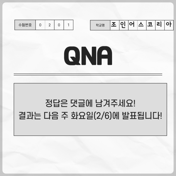 자신의 정답은 댓글로! 퀴즈의 정답은 다음 주 화요일에 공개됩니다!