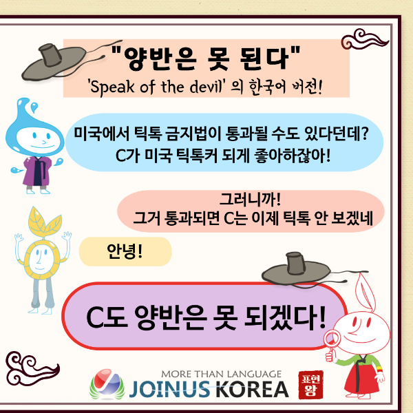 저번 주 속담에 관한 컨텐츠에 이어 이번 주에는 교과서에는 없지만 한국 사람들이 자주 쓰는 표현들을 준비했습니다.