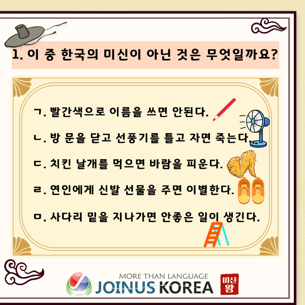 저희가 준비한 한국 미신에 대한 문제들을 풀어보시고 문제의 정답을 댓글을 달아보세요!