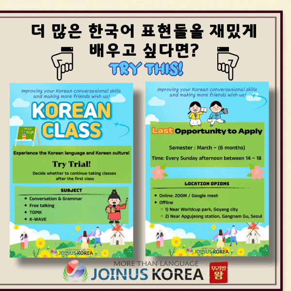 I thought many of you who watch our JOINUS KOREA might not know about the pure Korean lauguage of Korea, so we prepared it for you!