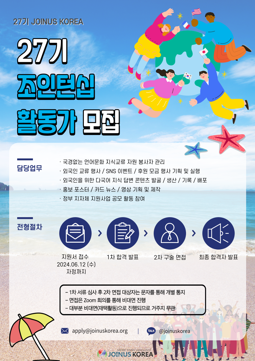 [모집] 언어와 문화를 통해 세상을 향한 도약! JOINTERNSHIP 27기! (~6/12)