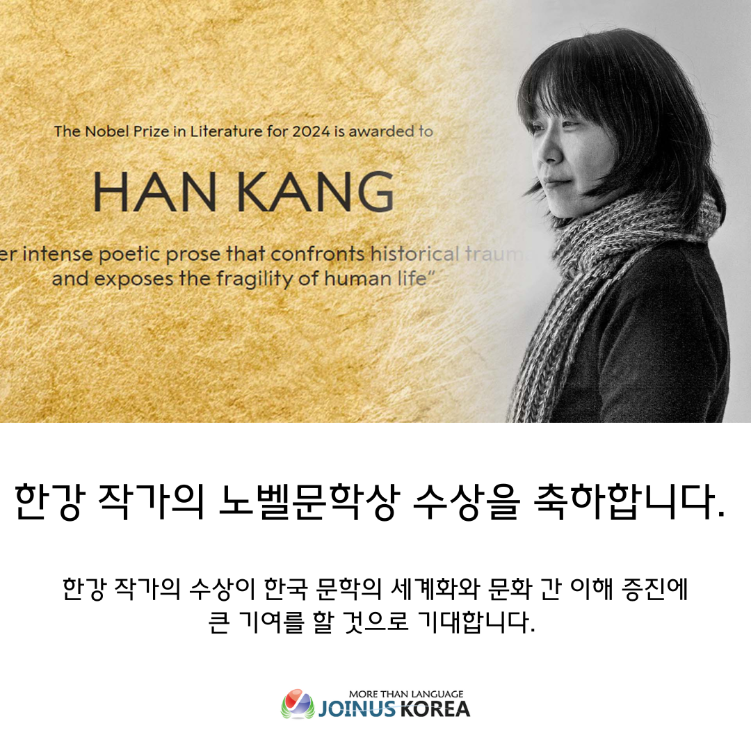 JOINUS KOREA celebrates Han Kang's contribution to globalizing Korean culture and continues to support the advancement of Korean literature and culture!