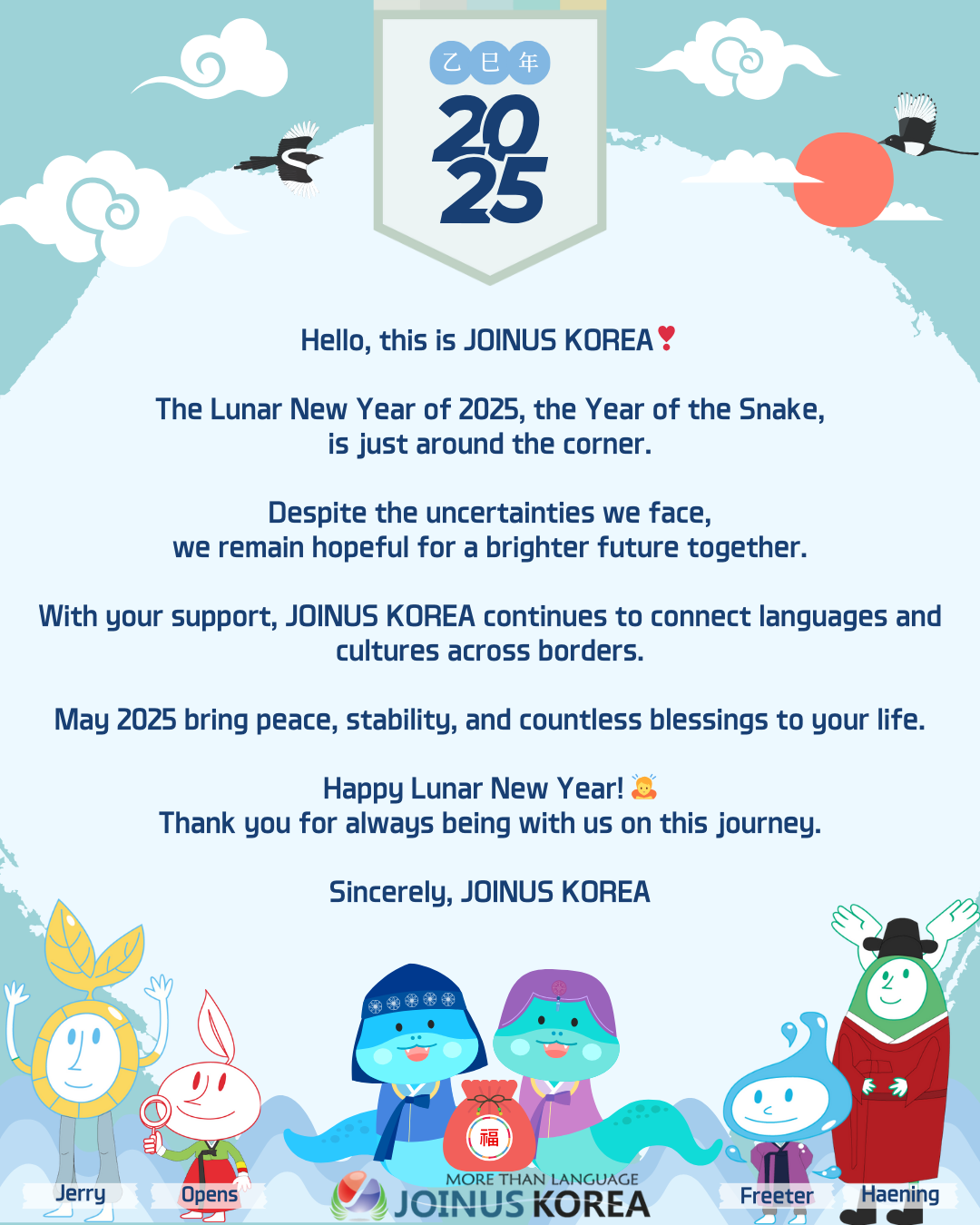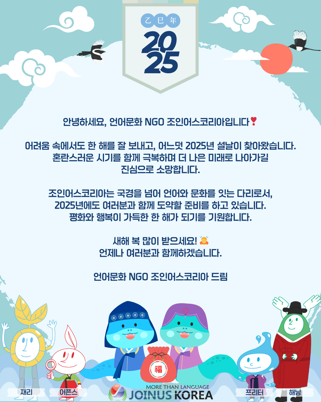 [조인어스코리아] 🐍뱀의 지혜와 유연함으로 함께하는 2025년, 새해 복 많이 받으세요🩵