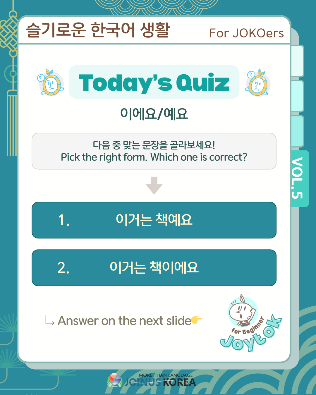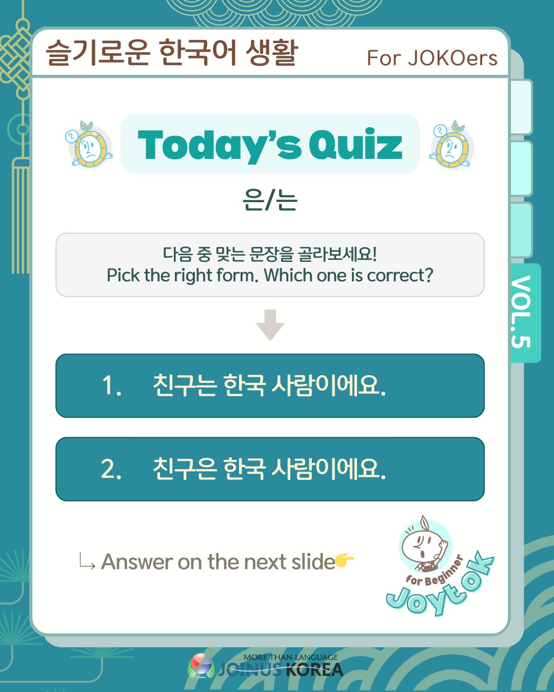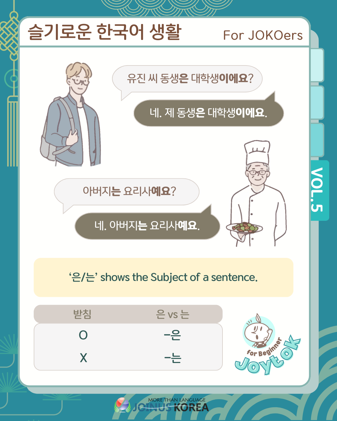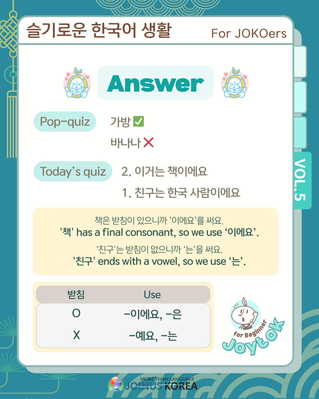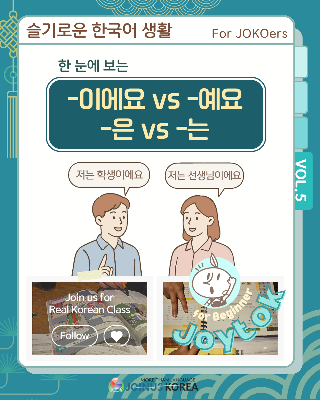 [Fun review of Korean Class] Joytok #5: 이에요/예요,은/는