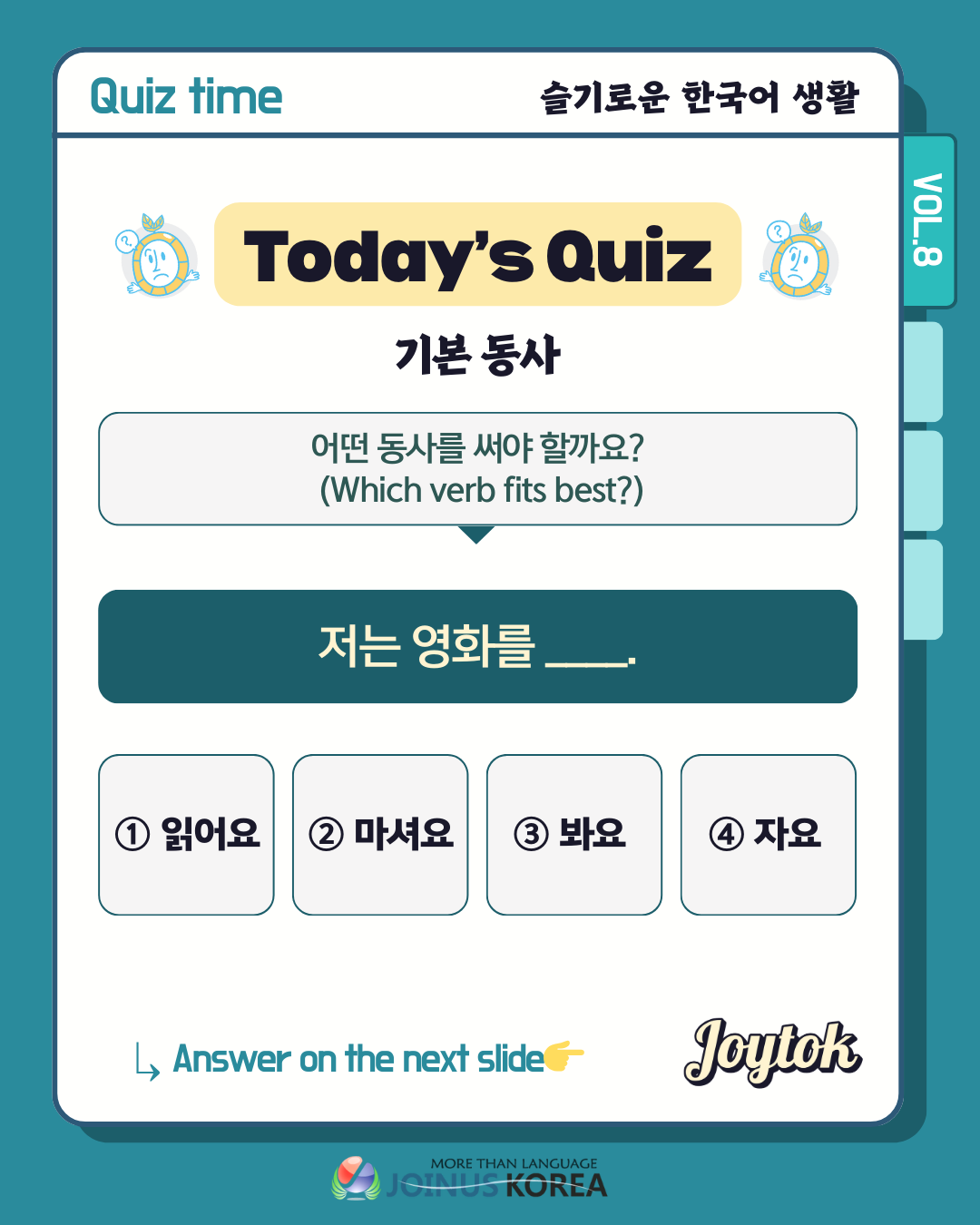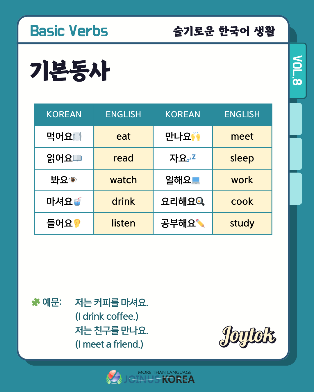 [Korean Class Catch-Up🚀] Joytok #8: 아요/어요, 을/를, 기본동사