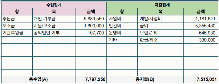 내부 회의, 봉사자 모임, 외부 활동·교류 이벤트에 소요되는 실비 성격 비용
