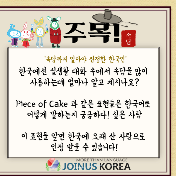 이번 주 콘텐츠의 주제는 “한국의 실생활에서 자주 쓰이는 속담”입니다!